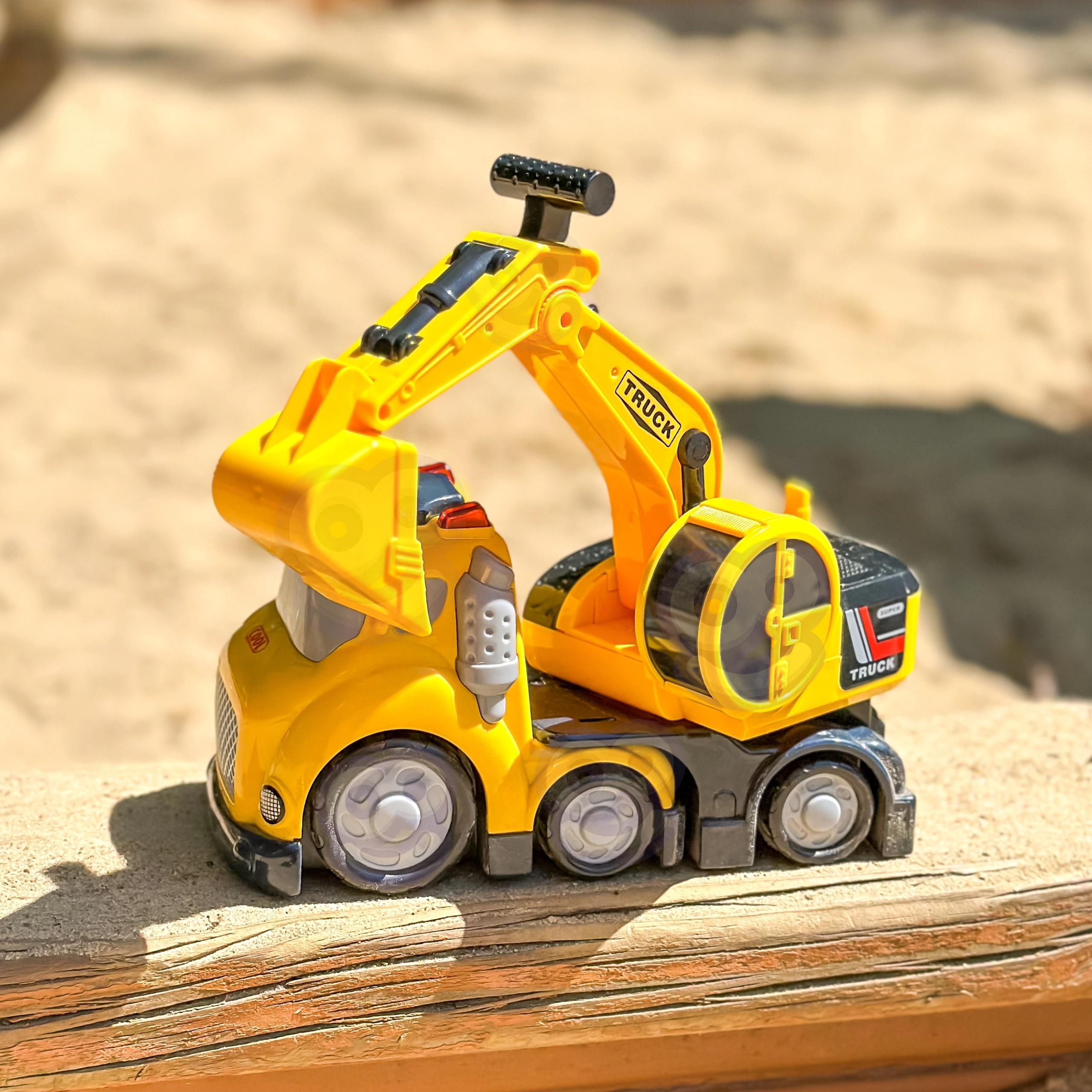 Kinder freuen sich über Lichter und Geräusche per Knopfdruck, Eltern über die sichere und robuste Konstruktion. Das Spiel mit dem Bagger fördert Vorstellungsvermögen, Kreativität und manuelle Fähigkeiten.