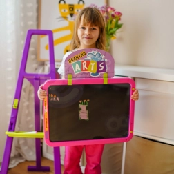 Die 3-in-1-Kindertafel ist das ideale Hilfsmittel zum Spielen und Lernen. Die magnetische Fläche eignet sich hervorragend für Spiele mit Magneten und das Legen von Buchstaben, die trocken abwischbare Seite ermöglicht Zeichnen und Schreiben mit Markern, und die spezielle fluoreszierende Seite erweckt dank LED-Markern leuchtende Bilder zum Leben. Ein Spielzeug, drei kreative Wege – ohne Chaos und immer wieder neu.