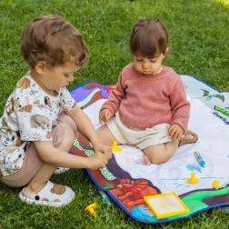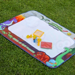 Die große Wasser-Malunterlage mit Dinosauriermotiv verwandelt den Boden in ein kreatives Atelier. Gemalt wird nur mit Wasser – ohne Flecken, ohne Geruch und ohne Sorgen. Sobald das Wasser trocknet, verschwinden die Kritzeleien und die Fläche ist bereit für neue Ideen.