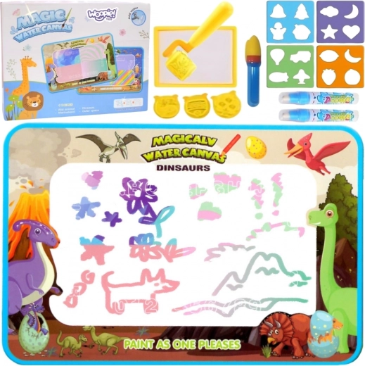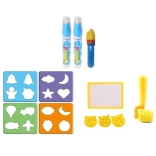 Das Set enthält Wasserstifte, Stempel, einen Roller, Schablonen und eine Wasserschale, damit die Bilder vielfältiger werden und das Lernen von Zahlen und Buchstaben noch mehr Spaß macht.