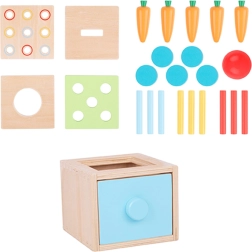 Basiert auf dem Prinzip des Einwerfens von Gegenständen in die richtigen Öffnungen. Einfache und dennoch lehrreiche Unterhaltung, bei der Kinder Freude und Herausforderungen erleben. Das Set enthält vier Schwierigkeitsstufen: