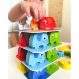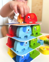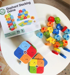 Das Spiel wurde unter Berücksichtigung der Sicherheit und des Komforts der Kinder entwickelt. Dank der abgerundeten Kanten ist es geeignet und sicher für Kinder ab 3 Jahren. Es besteht aus 46 Teilen, einschließlich Würfeln und Karten, die aus unbedenklichem Holz gefertigt und mit ungiftigen Farben bemalt sind.