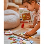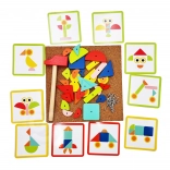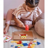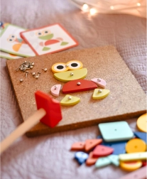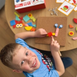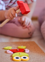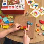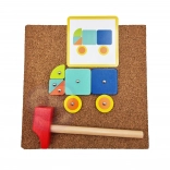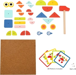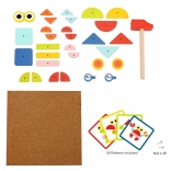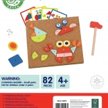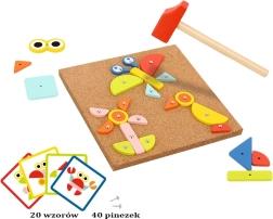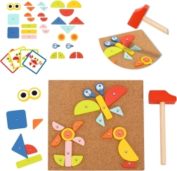 Das WOOPIE Green Hämmer-Spielzeug ist eine großartige Möglichkeit, die Kreativität und das logische Denken der Kinder zu fördern. Das Set besteht aus 30 Holzwürfeln, 10 beidseitigen Karten mit 20 Mustern auf drei Schwierigkeitsstufen, 40 Reißzwecken, einem Brett und einem Hammer. Kinder bemühen sich, das Bild von der Karte originalgetreu mit Würfeln in verschiedenen Formen und Farben nachzubilden, oder sie können eigene Designs nach ihrer Fantasie und Kreativität erstellen.