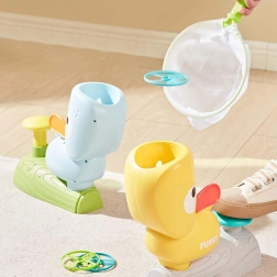 Das Geschicklichkeitsspiel der Marke WOOPIE ist für den Spaß der ganzen Familie gedacht. Es basiert auf Fertigkeiten, Konzentration und Bewegungskontrolle. Die Spieler müssen die mit einem Entenkatapult abgeschossenen Scheiben fangen. Je stärker Sie den Knopf drücken, desto höher fliegt die Scheibe, was das Spiel noch spannender macht.