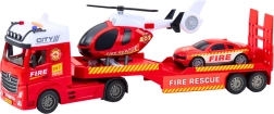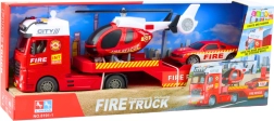 Das Feuerwehrset ist für Kinder geeignet, die Rettungsfahrzeuge lieben. Im Set enthalten ist ein großer Lastwagen, ein rotes Rettungsfahrzeug und ein Hubschrauber. Alle Teile haben eine charakteristische rot-gelbe Farbe und ein vom Feuerwehrkorps inspiriertes Design.
