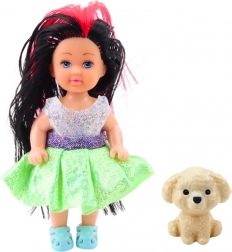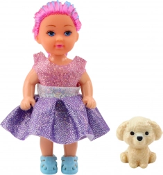 Jede Puppe hat blaue Augen, blaue Schuhe und ein 3 cm großes weißes Hündchen als besten Freund. Dank der unterschiedlichen Frisuren können Kinder das Frisieren ausprobieren und ihren eigenen Frisurenstil kreieren.