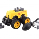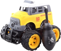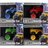 Das Auto besteht aus hochwertigem Kunststoffmaterial, was seine Langlebigkeit und Sicherheit gewährleistet. Gummierte Räder bieten eine bessere Haftung und Stabilität während der Fahrt. Die Abmessungen des Fahrzeugs sind etwa 13x11x12 cm, was die ideale Größe für kleine Kinderhände ist.
