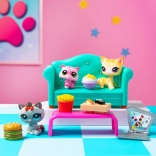 Dieses Themen-Set bringt drei stilisierte Katzenhaustiere und alles Nötige für ein entspanntes „Film & Snack“-Szenario: Mini-Notebook, Tischchen und leckere Kleinigkeiten – Pommes, Sushi, Burger und Popcorn. Dank der farbenfrohen Details und vielseitigen Accessoires können Kinder mühelos eigene Geschichten und Szenen gestalten.