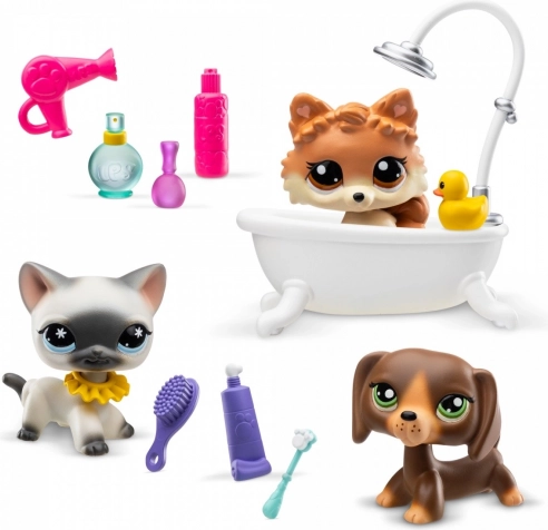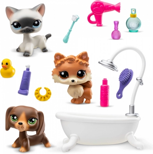 Verwöhnen Sie Ihre Haustiere mit dem perfekten Spa-Tag! Das Set bringt ein Trio beliebter Charaktere mit einzigartigem Stil und 10 Accessoires, damit sie stets sauber, duftend und bereit für die Show sind. Buntes Zubehör wie Bürste, Föhn und gelbes Entchen verwandelt jedes Bad in ein sprudelndes Spiel.