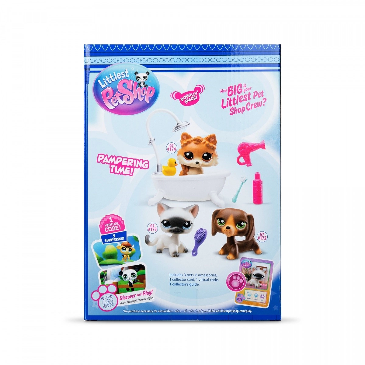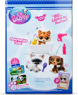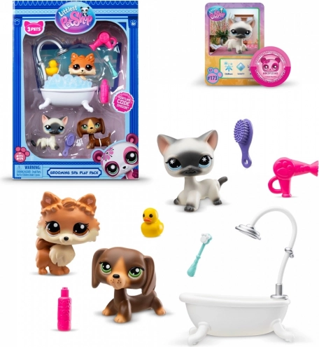 Gönnen Sie Ihren Haustieren luxuriöse Pflege mit dem Littlest Pet Shop SPA Set! Enthält 3 niedliche Figuren (Dackel, Siamkatze, Pomeranian) und farbenfrohes Spa-Zubehör für Spielspaß und kreative Geschichten. Mit dabei sind eine Sammlerkarte und ein virtueller Code, um digitale Überraschungen in der Welt von LITTLES PET SHOP freizuschalten.
