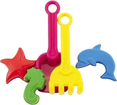 Das plastik Sandspiel-Set für Kinder sorgt für jede Menge Spaß beim Bauen von Burgen, Backen von Sandkuchen und Entdecken der Welt im Sandkasten. Dank des widerstandsfähigen Materials und der abgerundeten Kanten ist es auch für die Kleinsten sicher.