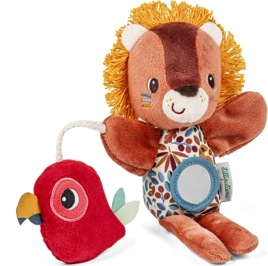 Die Handpuppe mit dem Löwenmotiv bietet verschiedene Aktivitäten, die die Entwicklung der Sinne und Motorik der Kinder unterstützen: