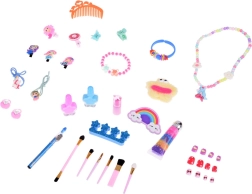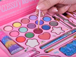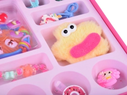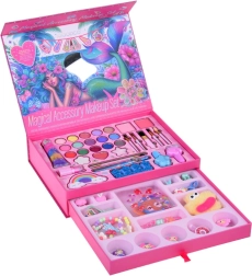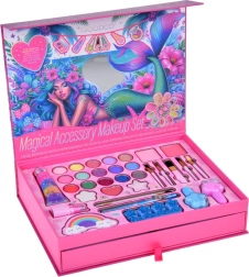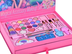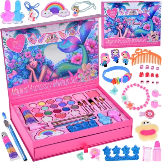 Beim Öffnen geschieht ein Wunder! Aber keine Sorge - im positiven Sinne! :) Innen finden Sie die Erfüllung der Träume jedes Make-up-Liebhabers! Außerdem enthält der Koffer eine Schublade voller Haaraccessoires und Schmuck. Fast jeder der Artikel hat ein Meerjungfrau-Motiv oder ein Element aus der süßen, mädchenhaften Welt.