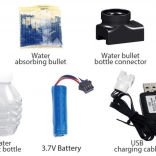 Im Set finden Sie Blaster, Magazin, Schutzbrille, wiederaufladbaren Akku und USB-Kabel. Einfach die Kügelchen hydrieren und losspielen.