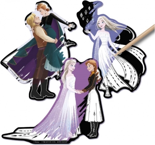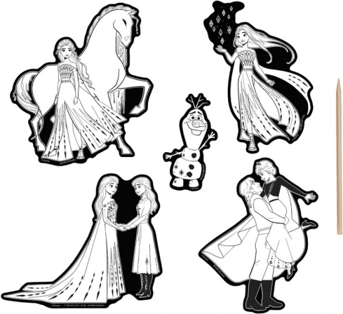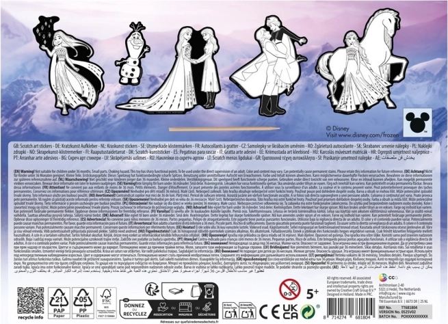 Gestalten Sie originelle Verzierungen und fördern Sie Feinmotorik und Kreativität. Mit nur wenigen Zügen des Schabers enthüllen Sie leuchtende Farben und beliebte Motive aus Die Eiskönigin, die Sie danach ganz einfach dort aufkleben, wo Sie möchten.