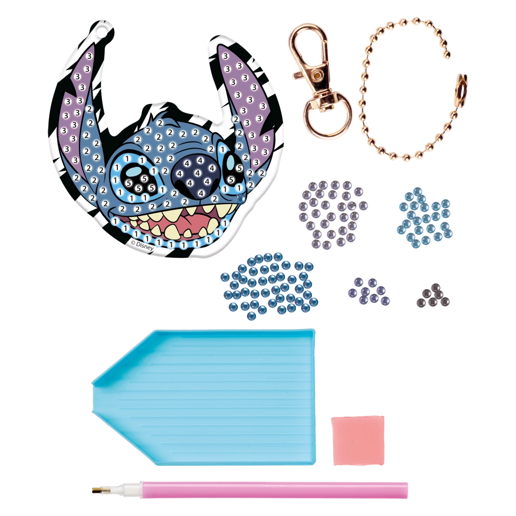 Diamantmalerei ist eine Aktivität zur Förderung der Kreativität und Vorstellungskraft. Erstellen Sie einen einzigartigen Schlüsselanhänger mit dem Motiv Stitch, der ein unverwechselbares Accessoire sein wird.
