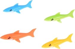 Das Set enthält 4 bunte Haie mit einer Länge von ca. 12 cm und einer Breite von 3 cm, hergestellt aus weichem, tauchbarem Gummi. Diese Spielzeuge sind angenehm zu berühren, ohne scharfe Kanten und völlig sicher für das Spielen im Wasser, sei es im Pool, Planschbecken oder in der Badewanne.