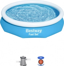 Dieser Gartenpool BESTWAY lässt sich innerhalb weniger Minuten aufbauen. Zum Aufblasen benötigt er nur den oberen Ring und wird bei Befüllung mit Wasser vollständig stabil. Nach der Saison können Sie den Pool dank dem Ablassventil mit Flusskontrolle einfach entleeren, was eine schnelle Entleerung des Wassers ermöglicht. Gefertigt aus robustem Material, bietet der Pool langfristige Haltbarkeit.