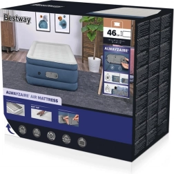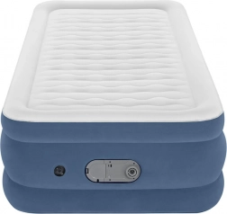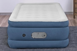 Die höhere Konstruktion (46 cm) erleichtert das Ein- und Aussteigen, während der Seitenrahmen beim Schlafen Schutz vor dem Herunterrutschen bietet. Der integrierte USB-Anschluss und die elektrische Pumpe (220-240V) bieten eine moderne Lösung für den täglichen Gebrauch. Hergestellt aus strapazierfähigem PVC-Material für eine längere Lebensdauer.