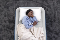 Die Matratze ist mit einer fortschrittlichen Technologie zur automatischen Überwachung des Luftdrucks ausgestattet, wodurch das Risiko des Einsinkens eliminiert wird. Der weiche Überzug aus hellem Velours ist angenehm zu berühren und leicht zu reinigen. Ein zusätzlicher Rand ermöglicht die Verwendung eines Spannbettlakens, wodurch sich die Matratze nach dem Beziehen wie ein klassisches Bett anfühlt.