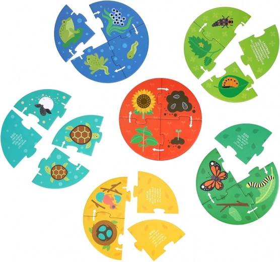 Das Puzzle Entdecker Lebenszyklus weckt das Interesse an der Welt der Natur. Dieses Set enthält sechs kleine Puzzles, die die Lebensphasen von Marienkäfern, Schmetterlingen, Schildkröten, Fröschen, Blumen und Vögeln veranschaulichen. Das Produkt fördert die Entwicklung von Hand-Auge-Koordination, kognitiver Entwicklung und Problemlösungsfähigkeiten.