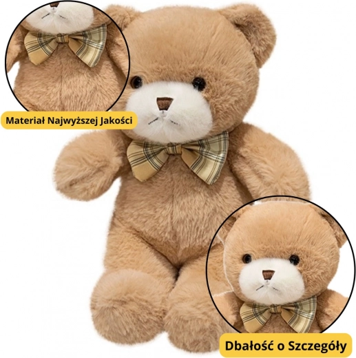 Der Plüschbär trägt eine elegante karierte Schleife, die ihm besonderen Charme verleiht. Dank der stabilen Konstruktion und proportionalen Silhouette kann der Bär alleine sitzen, was ihn zu einem großartigen dekorativen Element im Kinderzimmer macht. Er ist ein idealer Freund für tägliches Spielen und ein perfektes Geschenk für jeden, der klassische, niedliche Plüschspielzeuge schätzt.