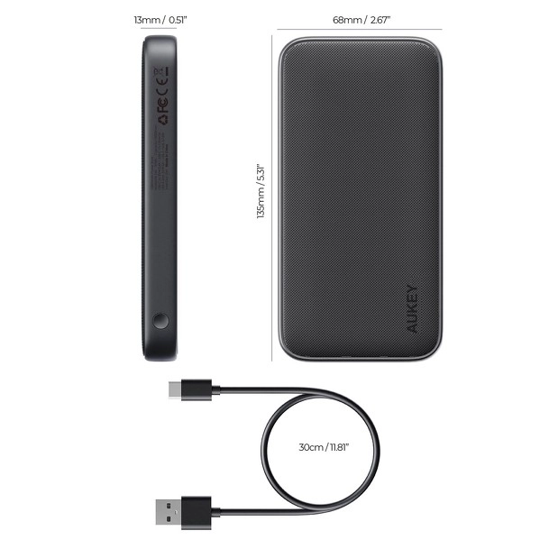 Die Aukey Spark Go ist eine innovative Lösung für all Ihre Ladebedürfnisse. Die Powerbank ist mit USB-C-Technologie ausgestattet, die schnelles Laden mit einem 5V/3A-Ausgang ermöglicht, kompatibel mit iPhone, Android und anderen USB-C-fähigen Geräten.