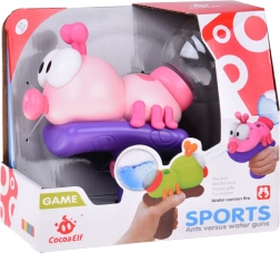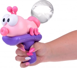 Die Wasserpistole zieht die Aufmerksamkeit auf sich mit ihrem märchenhaften Aussehen – der lustige Robâček hat große Augen, reizende Fühler und einen offenen Mund, aus dem beim Drücken des Knopfes Wasser spritzt. Die gesamte Konstruktion ist auf einem bequemen, farbenfrohen Griff platziert, der sowohl als Halterung als auch als Auslöser zum Schießen mit Wasser dient.