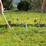 Die Tore lassen sich leicht in den Boden stecken und dank der abnehmbaren Griffe der Schläger und des praktischen Stoffbeutels können Sie das Set bequem lagern und transportieren. Die Produkte aus der Garden Buddies-Reihe, zu der auch das Krocket gehört, bieten viel Spaß und fördern motorische Fähigkeiten.