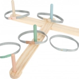 Dieses Spiel ist eine großartige Möglichkeit, Zeit mit der Familie und Freunden zu verbringen. Das Set enthält 5 Stangen und 5 Wurfringe, wobei jeder Ring mit einem kleinen Tier wie Frosch, Eichhörnchen, Vogel, Kaninchen und Igel verziert ist. Dank des weichen Materials können Sie das Spiel sowohl draußen als auch drinnen genießen. Das Ziel kann einfach in Form eines Kreuzes oder T aufgestellt werden.