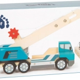 Der Kinderkran besteht aus hochwertigem Holz, Gummi, Metall und Stoff, was Langlebigkeit und eine lange Lebensdauer gewährleistet. Er eignet sich für Kinder ab 2 Jahren.