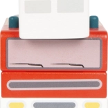 Dank der gummierten Reifen ist die Fahrt leise und sicher. Abgerundete Kanten und Fensteröffnungen sorgen dafür, dass auch kleine Kinderhände das Fahrzeug sicher steuern können.