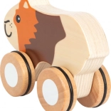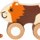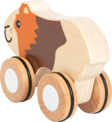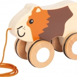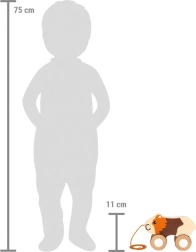 Dieses Ziehspielzeug ist entworfen, um die Entwicklung motorischer Fähigkeiten zu unterstützen und die Mobilität zu fördern. Die robuste Konstruktion auf gummierten Rädern ermöglicht eine reibungslose und leise Fahrt, die ideal für jeden Spaziergang ist.