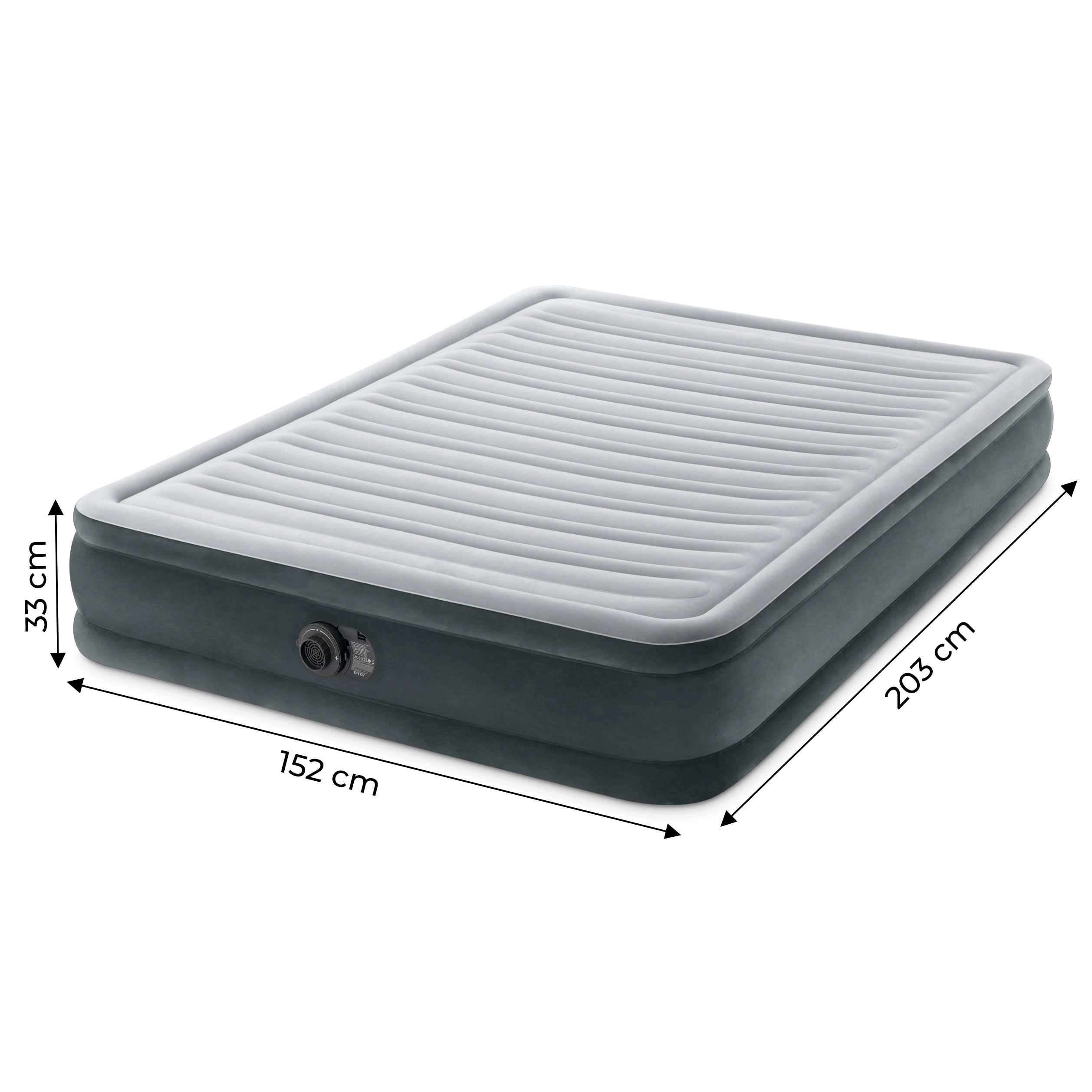 Suchen Sie eine komfortable und langlebige Lösung zum Übernachten für Gäste oder unterwegs? Dieses aufblasbare Doppelbett von INTEK bietet dank der weichen Veloursoberfläche, der erhöhten Höhe und der gleichmäßigen Gewichtsverteilung einen hohen Schlafkomfort. Die integrierte Elektropumpe sorgt innerhalb weniger Minuten für ein schnelles Auf- und Abpumpen.