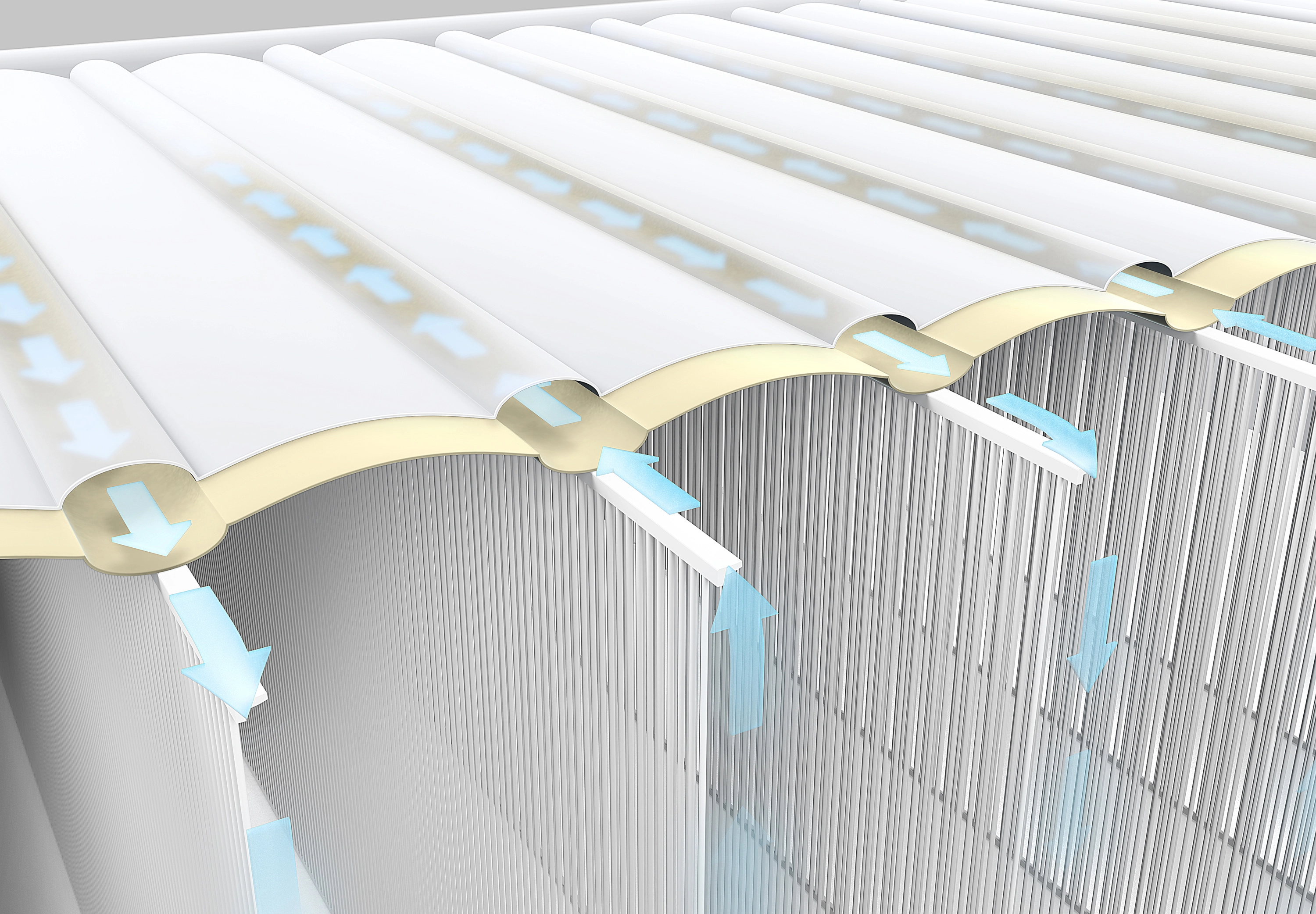 Verstärkte Kammern mit Polyesterfasern erhöhen die Steifigkeit und Lebensdauer. Dura‑Beam verteilt das Gewicht gleichmäßig und unterstützt eine korrekte Haltung der Wirbelsäule.