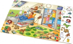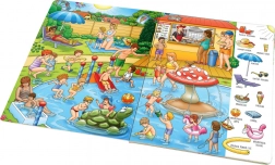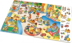 Fesselndes Buch für die Kleinsten mit dem Titel Unterwegs - Großes Buch der ersten Wörter bringt wunderschön illustrierte Geschichten und Situationen aus dem Alltag. Kinder lernen erste Wörter und entwickeln Fähigkeiten, die sie zum Lesen brauchen.