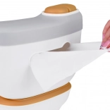 Dank des herausnehmbaren Inneneinsatzes ist die Pflege schnell und hygienisch. Der eingebaute Spender für Feuchttücher unterstützt richtige Hygieneroutinen. Glatte Kunststoffoberflächen lassen sich leicht reinigen und die beiliegende Reinigungsbürste hilft, alles perfekt sauber zu halten.