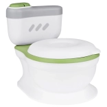 Das interaktive Kindertöpfchen in Form einer echten Toilette macht das Töpfchentraining dank realistischem Spülgeräusch und fröhlichen Melodien angenehmer. Es verfügt über einen weichen, gepolsterten Sitz, einen herausnehmbaren Einsatz für einfache Reinigung und einen praktischen Spender für Feuchttücher. Die stabile Konstruktion, das bequeme Sitzen und ein Knopf mit Spülsound machen das Töpfchen zu einem spielerischen und motivierenden Helfer für das tägliche Training.