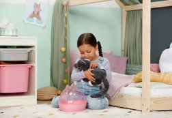 Das Set enthält ein Bettchen, das auch als Transportbox dient. Dadurch können Kinder die Katze überallhin mitnehmen und auch unterwegs Freude an ihr haben. Dieser Aspekt von Spaß und Tragbarkeit macht die Katze Cookie zu einer großartigen Begleiterin.