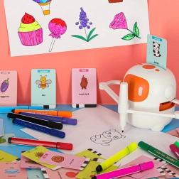 Motivation zur kreativen Entwicklung - Der Roboter fördert die Entwicklung von Motorik und Hand-Augen-Koordination bei Kindern, was wichtig für ihr Wachstum und ihre Entwicklung ist. Zusammen mit dem Roboter entdecken Kinder die Magie des Zeichnens, verschiedene künstlerische Techniken und das Sprachlernen.