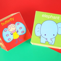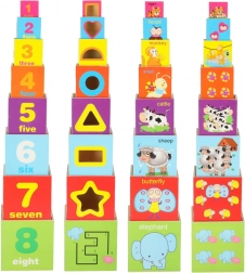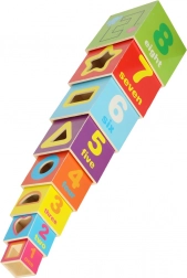 Die Würfel fördern die Entwicklung von Sprach- und mathematischem Geschick, Formenerkennung und Präzision.