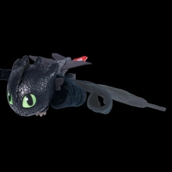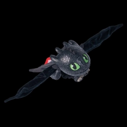 Die Flügel sind mit einem Klettverschluss ausgestattet, sodass Ohnezahn sich leicht zum Beispiel am Arm, Rucksack oder Bett befestigen lässt. Mit den Gummigriffen kann der kleine Drache außerdem sicher und mit Spaß in die Luft geschnippt werden – ähnlich wie mit einer Schleuder – und eröffnet Kindern eine neue Dimension von Spiel und Fantasie.