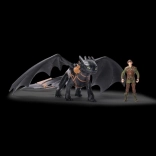 Entdecke das ikonische Duo aus Drachenzähmen leicht gemacht. Ohnezahn (ca. 32 cm) und Hicks (ca. 8 cm) werden dank authentischer Details, beweglicher Gelenke und Flügeln mit realistischer Oberfläche lebendig – für ein noch intensiveres sensorisches Spielerlebnis. Durch stabile Stifte im Sattel lässt sich Hicks leicht auf dem Rücken des Drachen platzieren, um Lieblingsszenen nachzuspielen oder neue Missionen zu erfinden.