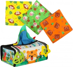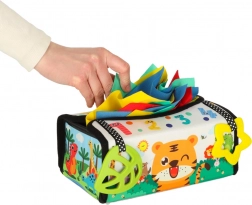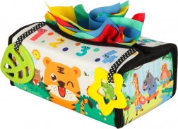 Lernen durch Aktivität: Das Einstecken und Herausziehen von Taschentüchern fördert manuelle Fähigkeiten und Feinmotorik. Das Kind übt präzise Handbewegungen und genießt dabei die Freude an der Entdeckung von Farben und Strukturen.