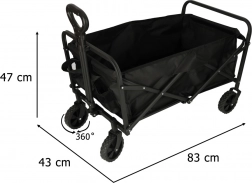 Der Wagen besteht aus einem stabilen Stahlrahmen mit Pulverbeschichtung, der bis zu 100 kg tragen kann. Der verstärkte Stoff bietet Widerstandsfähigkeit gegen Abrieb, Feuchtigkeit und intensiven Gebrauch - und dank der UV-Oberfläche sieht er auch nach der Saison großartig aus.