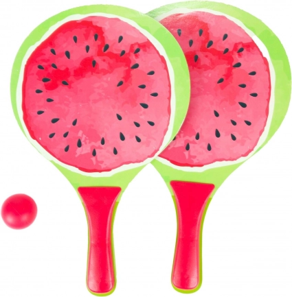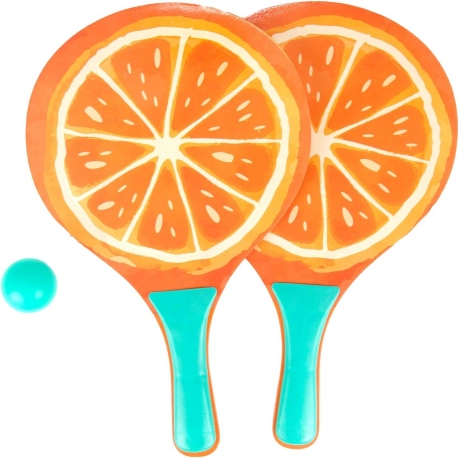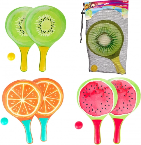 Strandtennis-Set mit Obstmotiven, 2 Schläger und Ball im Netzbeutel
