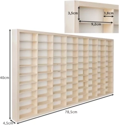 Dank der herausnehmbaren Trennwände aus 3 mm Sperrholz passen Sie die Aufteilung exakt an die Größe Ihrer Sammlung an. Sie können das Regal an der Wand aufhängen (Aufhänger und Montageset sind im Lieferumfang enthalten) oder es auf eine Kommode bzw. einen Tisch stellen. Die natürliche Kieferoptik ergänzt zudem wunderbar das Kinderzimmer.