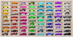 Bis zu 80 Fächer halten jedes Modell übersichtlich an seinem Platz. Kinder finden ihr Lieblingsauto schnell und die Sammlung wird zur Zierde des Zimmers.