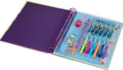 Malbuch, Bleistift, Radiergummi, Wachsmalstifte, Filzstifte und Schablonen