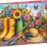 Genießen Sie den Spaß mit diesem wunderschönen 1000-teiligen Puzzle, das das einzigartige Motiv Goldene Gummistiefel im Garten zeigt. Perfekt für Puzzle-Liebhaber und zur Entspannung.